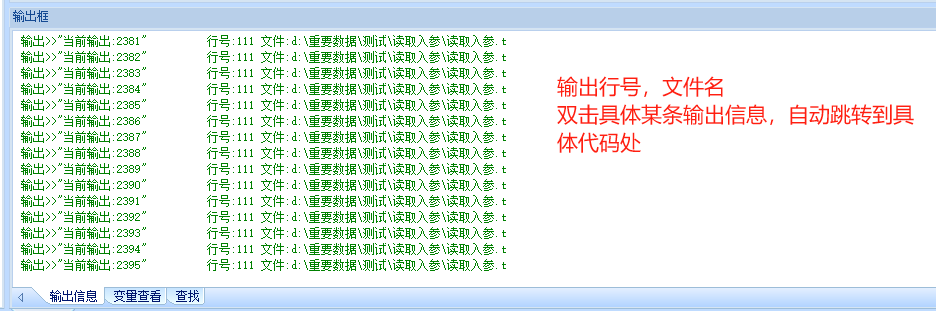 如何用aardio制作一个输出框,嵌入到aar里面,输出信息包含 调试的输出+行号+文件名称,如果双击具体某条输出信息,可自动跳转到具体代码处
