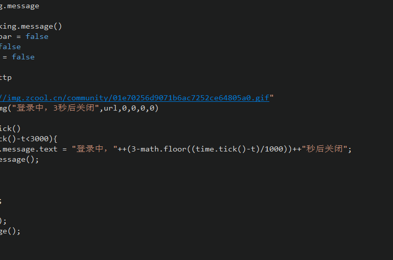 m.winform.message.text = "登录中,"++(3-math.floor((time.tick()-t)/1000))++"秒后关闭";这一句多了一个winform。
