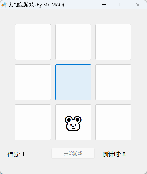 var winform = win.form(text="打地鼠游戏 (By:Mr_MAO)";right=400;bottom=450;border="dialog frame";max=false)