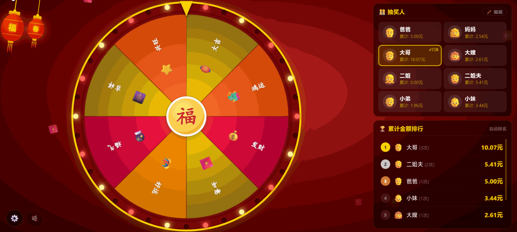 大转轮可以设置奖池奖金、可以编辑参与者名称。