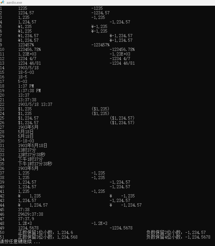 format.numFormat = book.addNumFormat(`"正数保留1位小数:"#,##0.0;"负数保留2位小数:-"#,##0.00`/*数字格式文本*/);