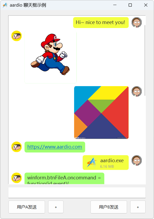 var winform = win.form(text="aardio 聊天框示例";right=463;bottom=631)
